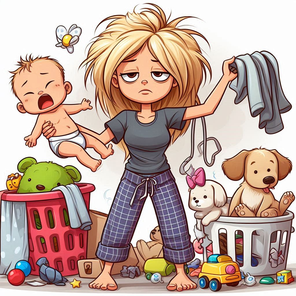 Off to change a diaper, feed baby, rock baby, eat, fold laundry, then sleep.